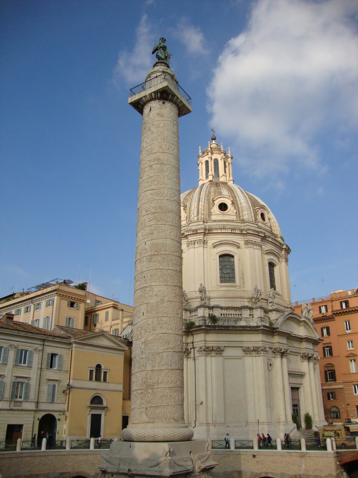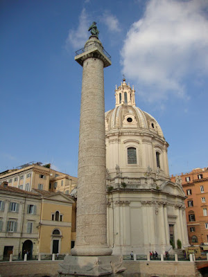 Esta impressionante coluna de pedra, com quase 30 metros de altura mais oito metros de pedestal, foi a contribuição do Senado de Roma para o Fórum de Trajano. Constituída por vinte blocos de mármore de Carrara, tem esculpido na face exterior com um friso em espiral, com a história das duas Gerras Dácias de Trajano.